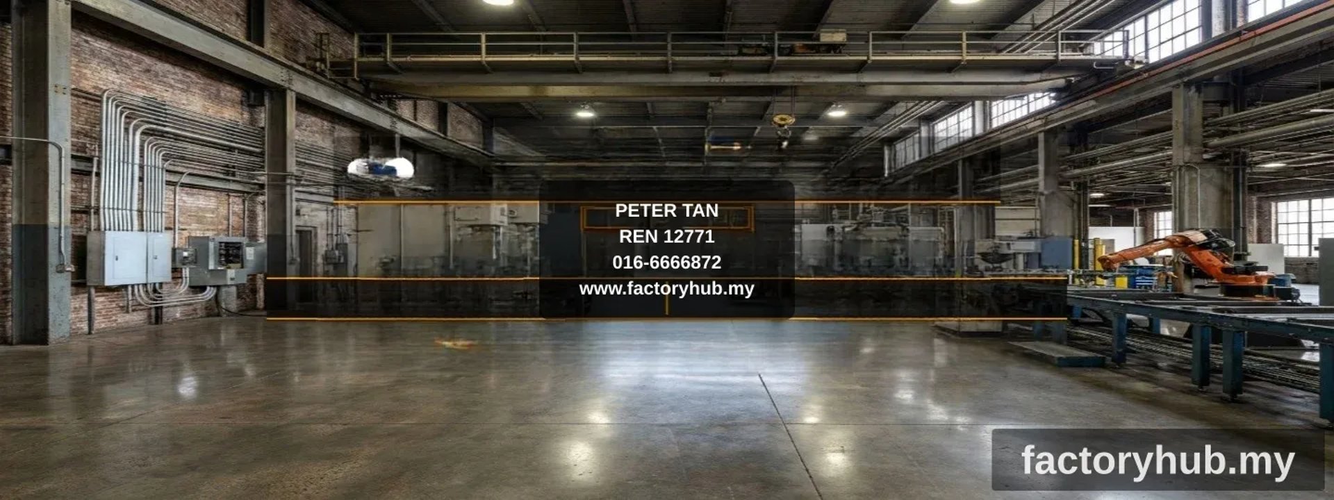 Detached factory warehouse for rent in Sg Choh Serendah, Rawang, Selangor. This large-scale industrial facility is situated on a 4-acre freehold land parcel with a total built-up area of 100,000 sqft, featuring 96,000 sqft of single-storey high-clearance warehouse space. The property is fully equipped with a 5-ton, 10-ton, and 20-ton overhead crane system, ready for immediate operation.
